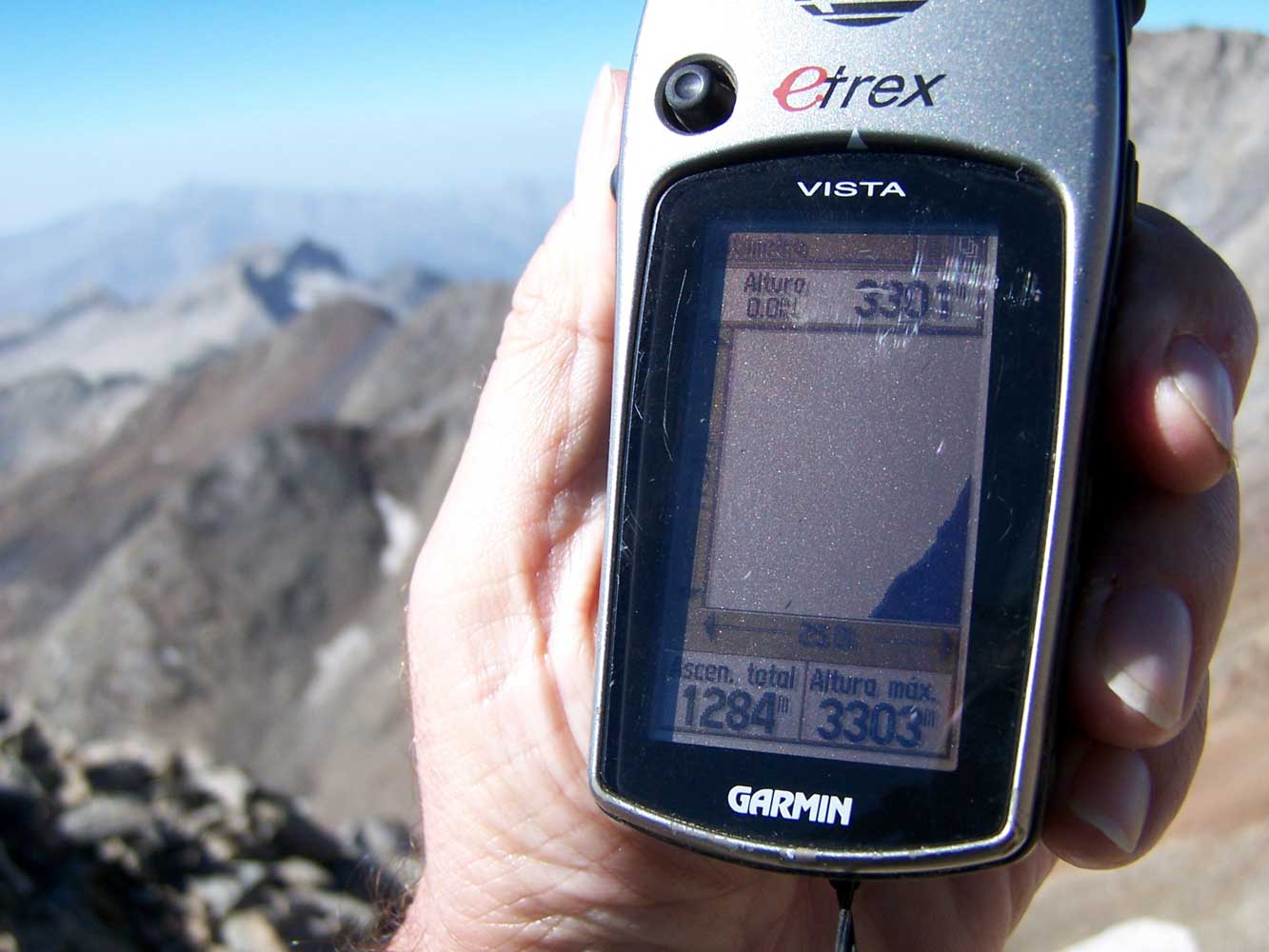El GPS muestra los más de 3.300 m. y el perfil un poco "inclinado" de la subida. |