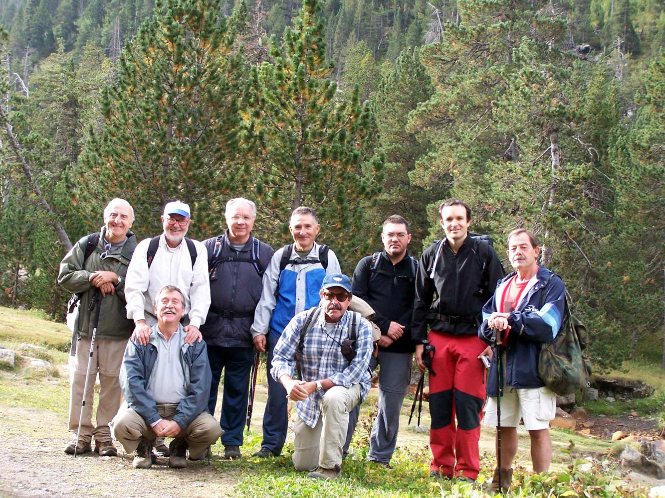 Los 9 de Benasque 2007: Rafa Gimeno, Angel, Ricardo, Rafa Saéz, Juanjo, José, Nicolás, Miguel y José Vicente, en el Ball de Ballibierna. |