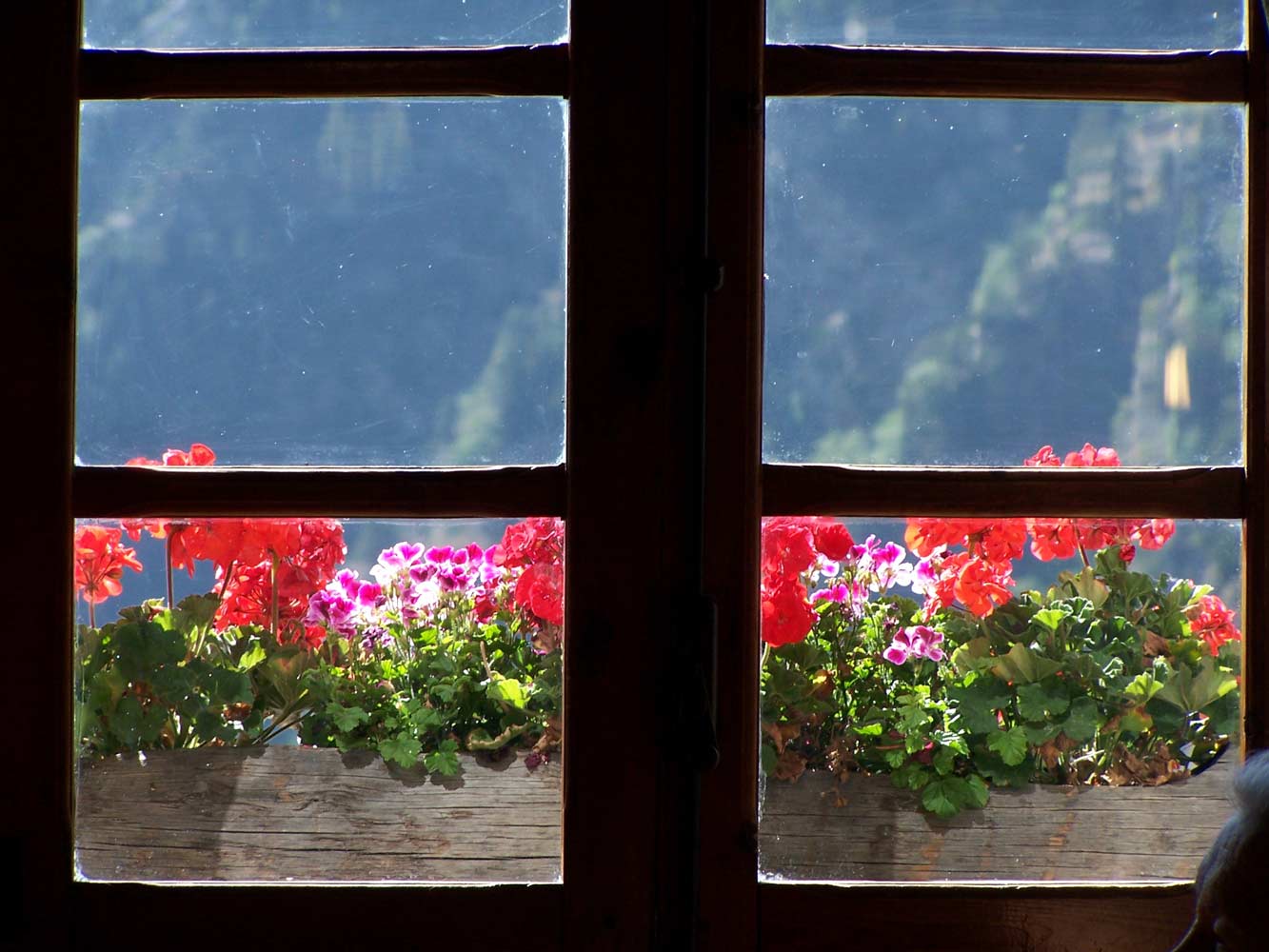 Los geranios en las ventanas de los Baños de Benasque. |