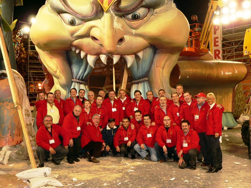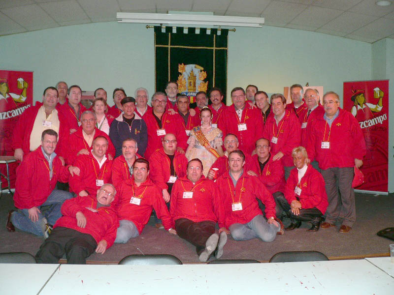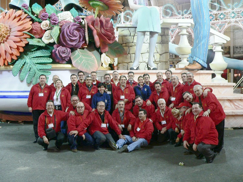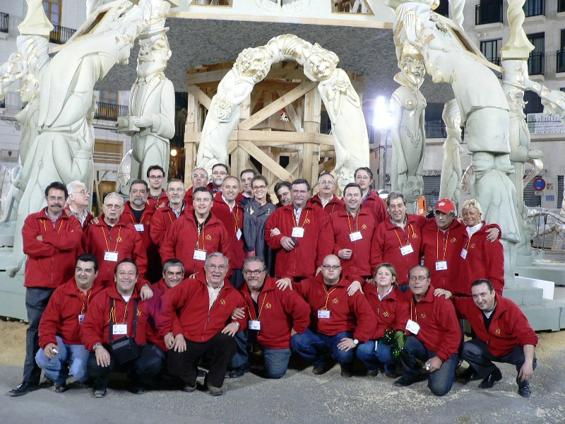 Los miembros de L'Apera en la plantá de la Falla Convento Jerusalén, con su Fallera Mayor Inmaculada Ortuño, precisamente hija de un Lapero, Antonio Ortuño |