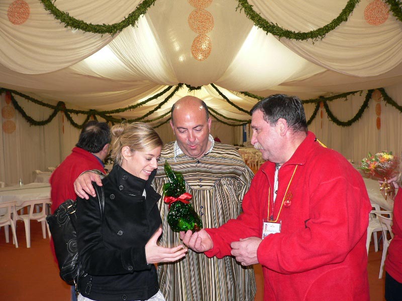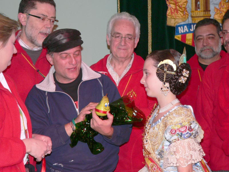 Entregando nuestra mascota a la Fallera Mayor Infantil de Valencia Nuria Llopìs y al Presidente de la Falla Na Jordana, Pere Borrego |